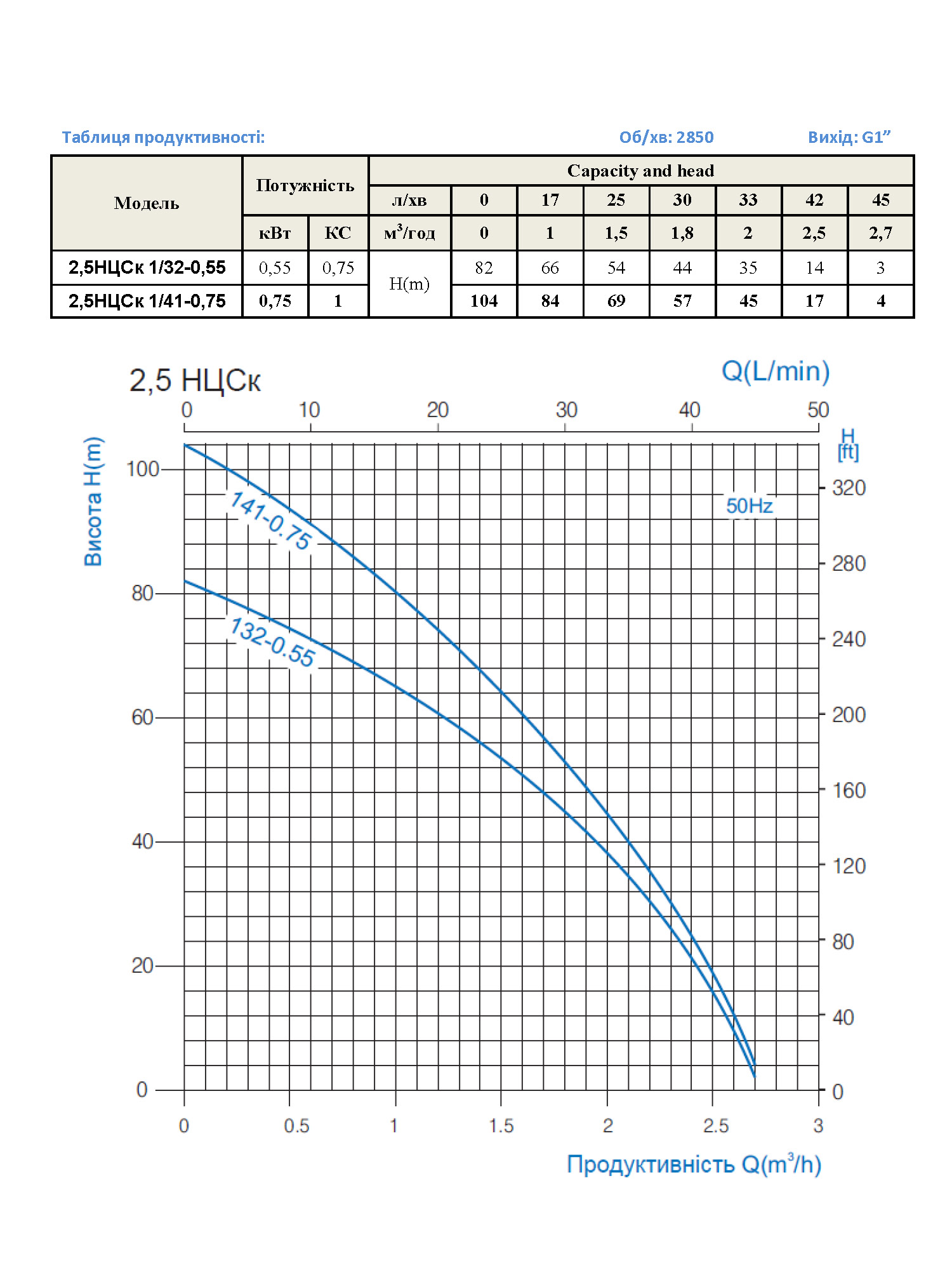 Діаметр напірного патрубка, "(дюйм)